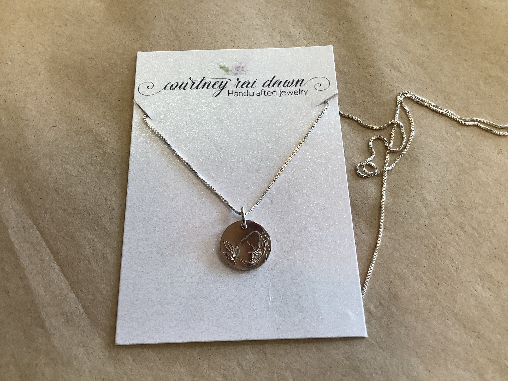 Necklace length: 18 Inches; Pendant height: 7/16 Inches; Pendant width: 7/16 Inches