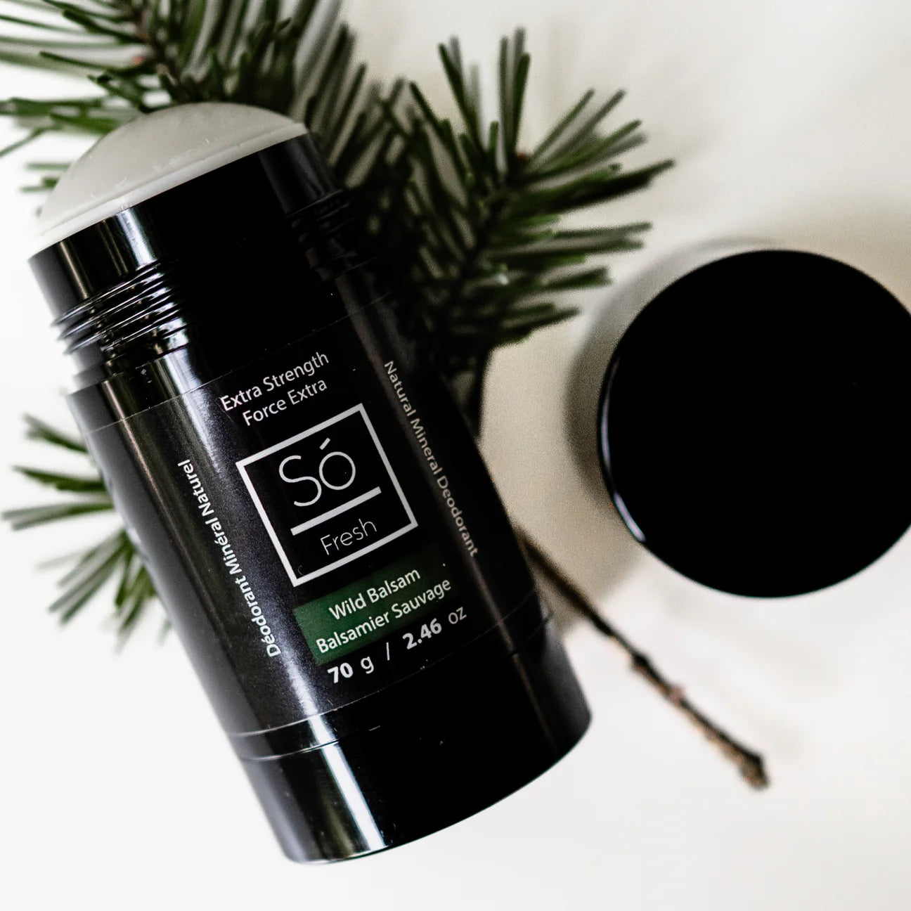 Só Fresh Natural Mineral Deodorant is available in Extra Strength (with baking soda) and Sensitive Skin (baking soda free). Free from aluminum, parabens, phthalates and animal products.