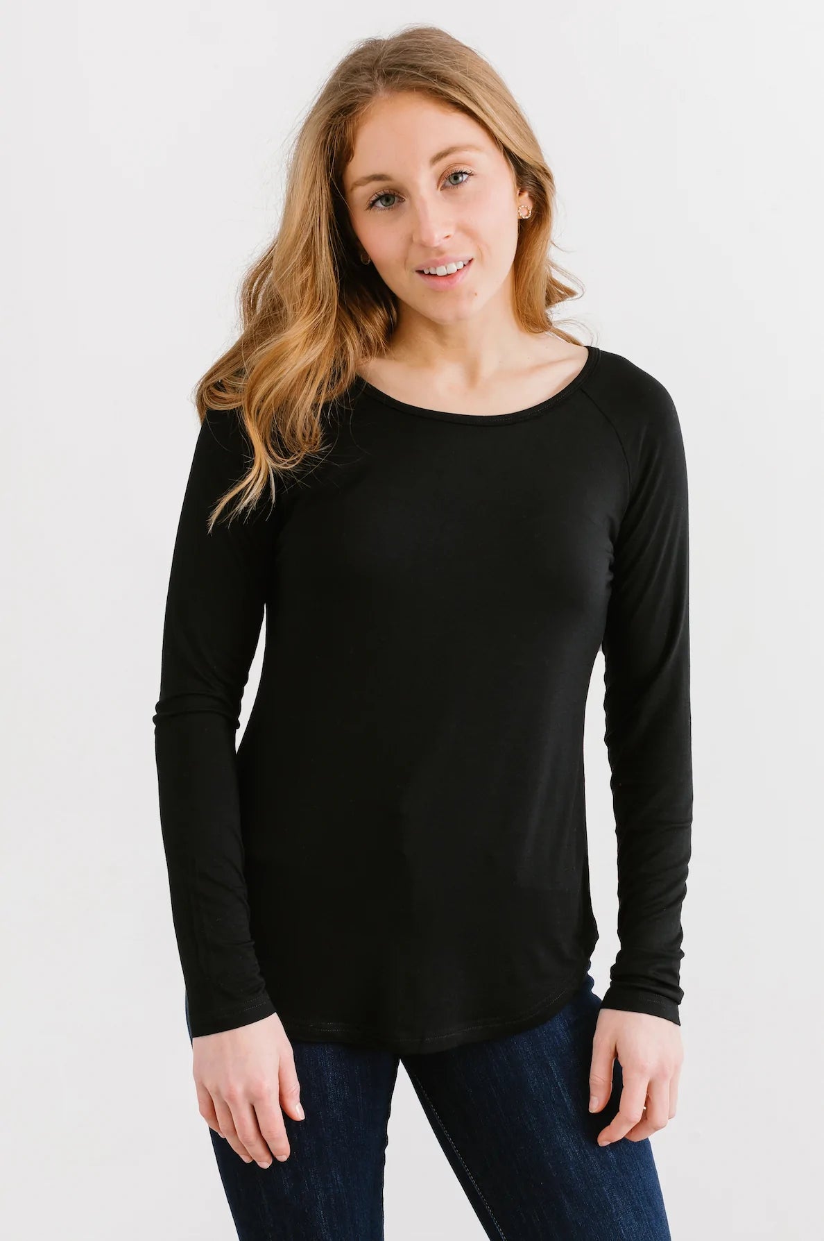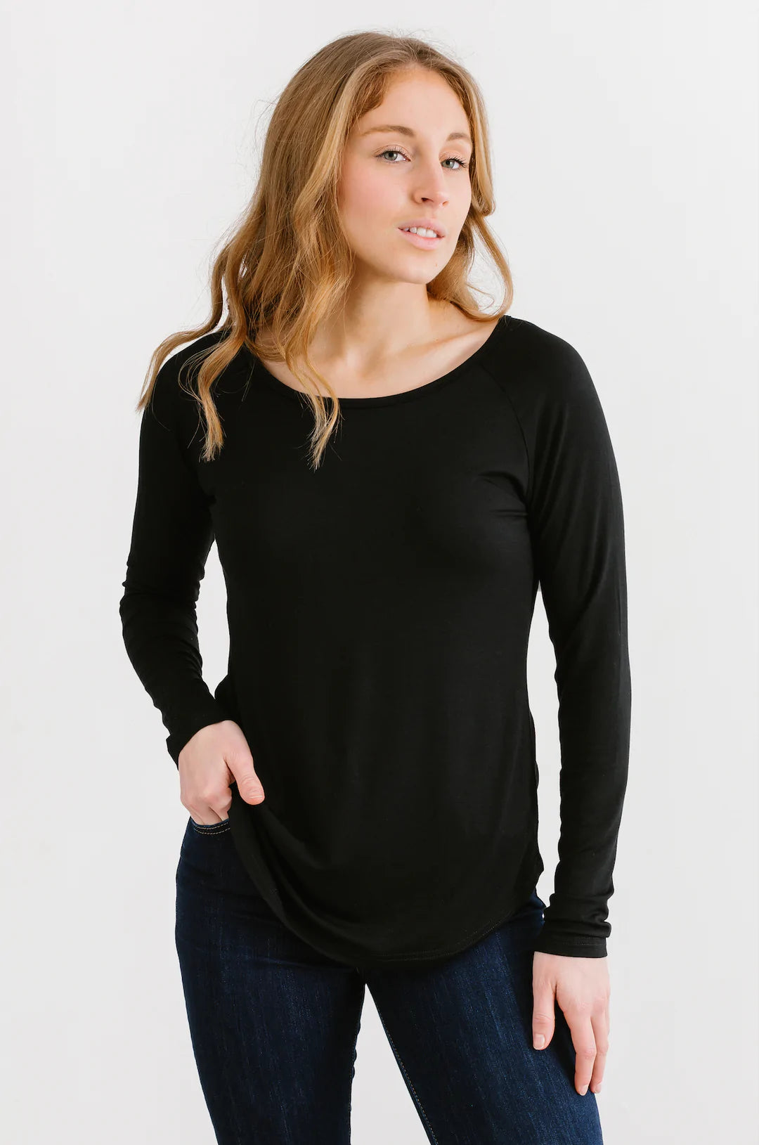 Our best seller long sleeve features a down-the-spine quote and rounded bottom hem. Light-weigh fabric makes this the ideal layering item.