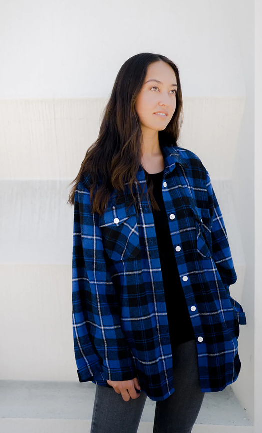 Deeper tones give this shacket a beautiful texture. An ideal length for all seasons, layer this shacket for winter or stay cool and breezy in the spring months. The bell sleeve gives this shacket an elevated look, to be dressed up or worn casually.