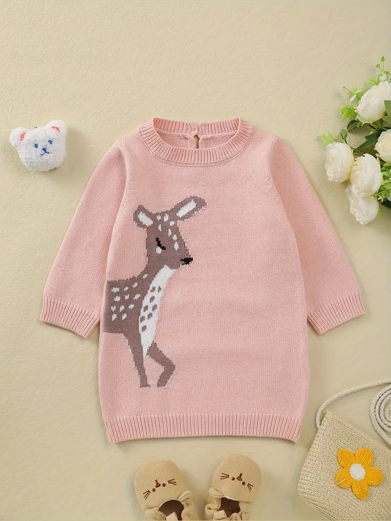 Town & Country- Pink Deer Sweater Dress