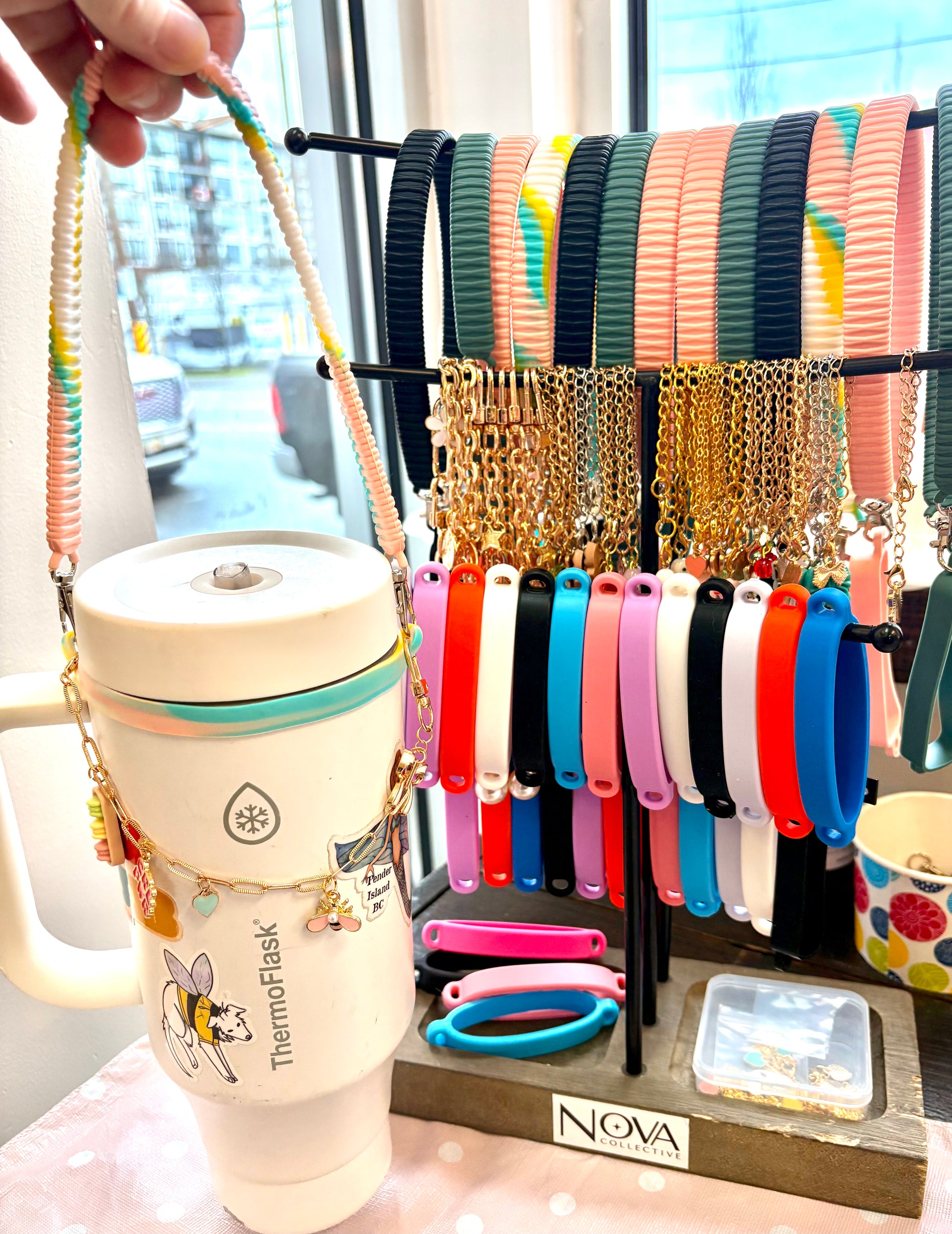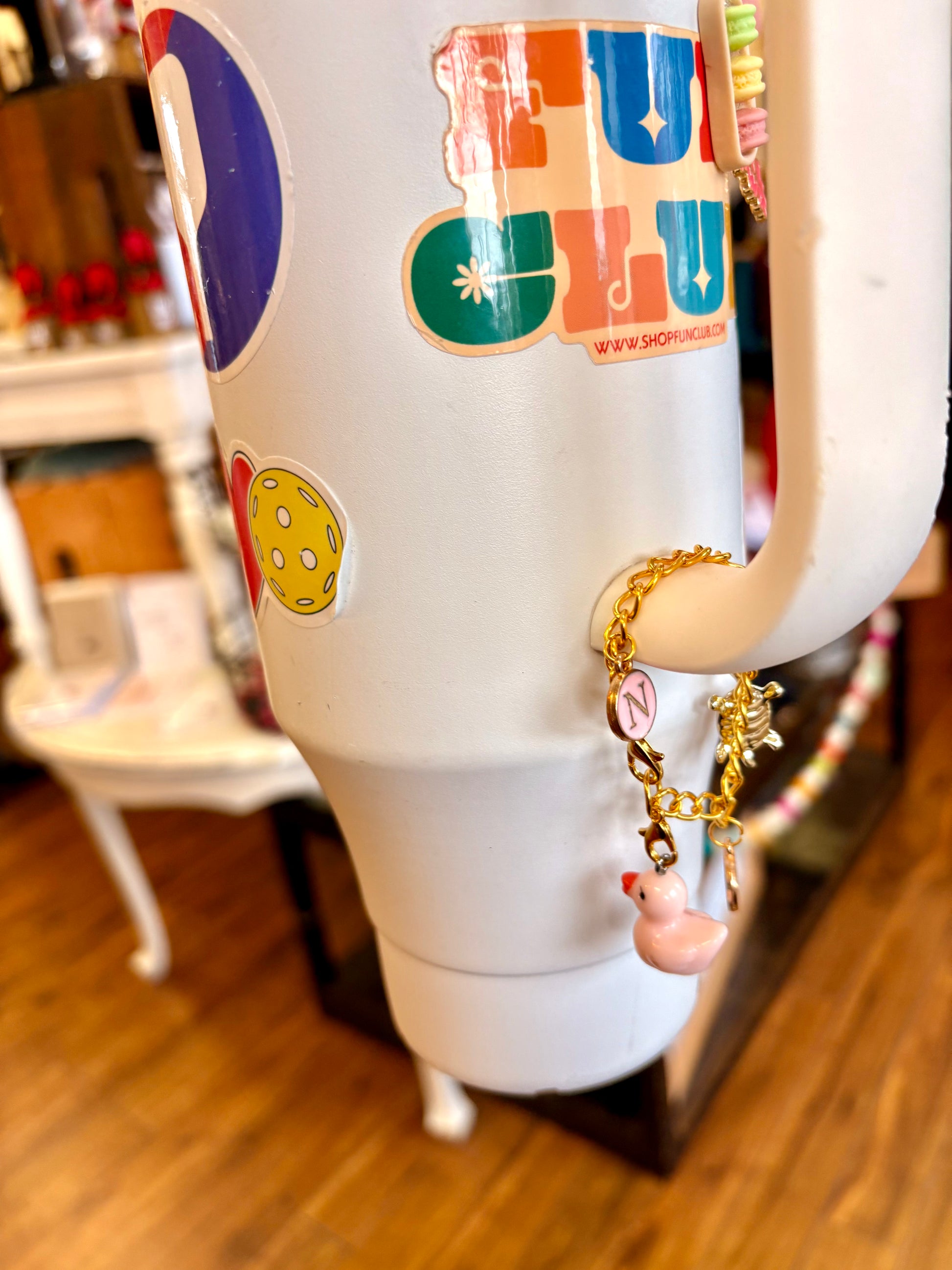 water bottle chain with charm for handle