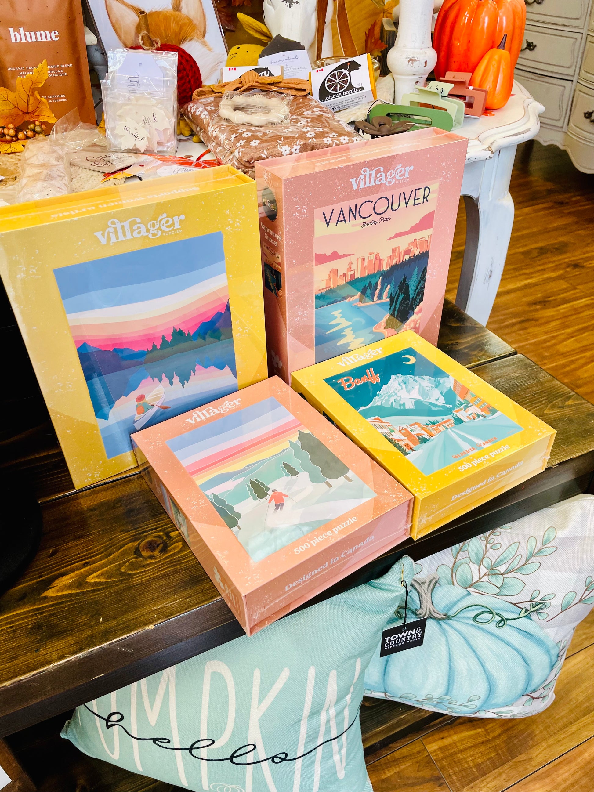 Start your morning with a peaceful paddle on the lake before anyone else is awake. Catch the sunrise, take in the scenery and piece it all together. You can almost hear the loon call. Beautifully-illustrated puzzle of a sunrise canoe paddle, featuring stunning gradient colours. Designed by talented Canadian artist and nature lover, Maude Gervais.